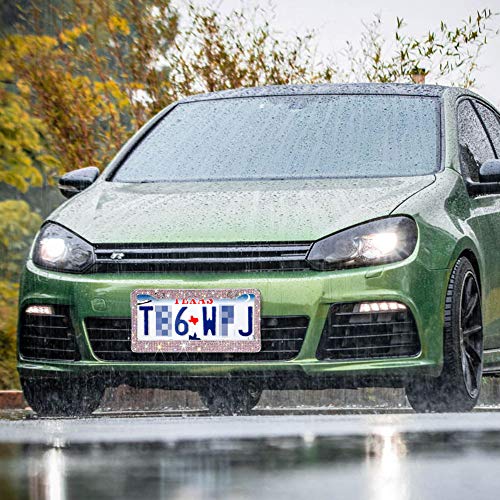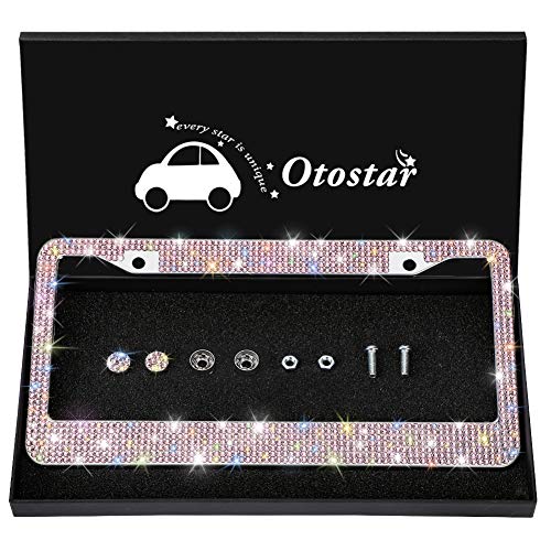 Carfond 7 Row Handcrafted Sparkling Shining Crystal Diamond Stainless Steel Metal License Plate Frame 2 Holes Bonus Matching Screws Caps (Pink crystal)