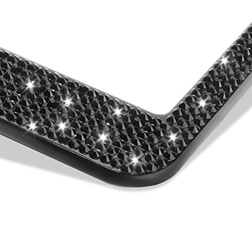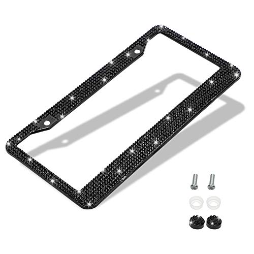 Carfond 7 Row Pure Handmade Waterproof Bling Bling Rhinestones Aluminium Metal License Plate Frame with 2 Holes Bonus Matching Screws Caps (Black)...
