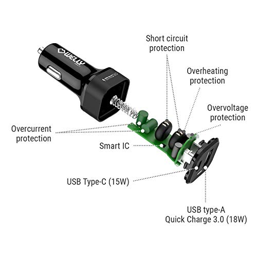 Cargador de coche welly enjoy usb tipo-c con carga rapida 3.0 negro WY11000
