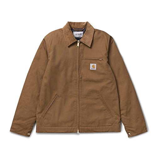 Giubbotto Carhartt DetroitToile 'Dearborn' 100% cotone, 12 oztessuto idrorepellente a righe, maniche foderate di nylon, colletto in velluto a costine con zip frontale a doppio sensore, polsini regolabili e fascia inferiore-pressione personalizzata.