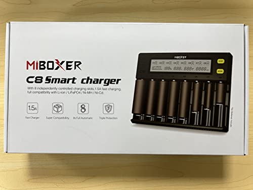 Caricabatteria 18650, Caricatore Intelligente MiBOXER a 8 Alloggiamenti con Display LCD Automatico, Ricarica Rapida Agli Ioni di Litio LiFePO4 Ni-MH Ni-Cd AA AAA 21700 26650 13650 16340 18350 RCR123