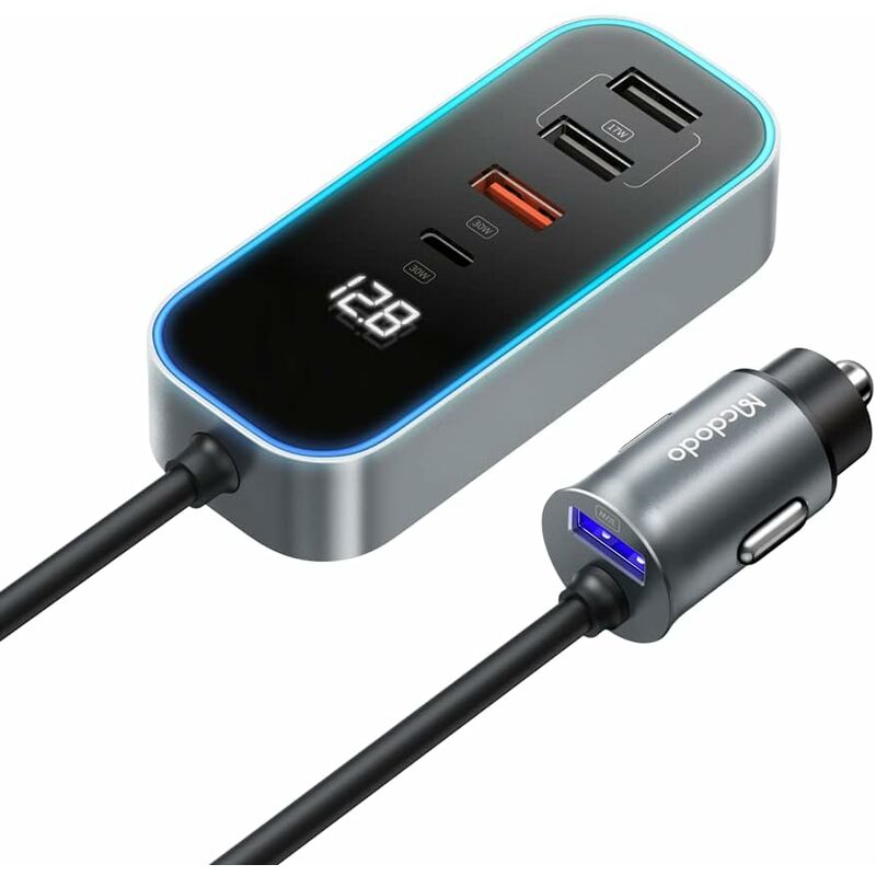 POTENZA TOTALE 107 W - L'accendisigari USB ha cinque porte, 30 W USB A1, 17 W USB A2 e 17 W USB A3, 30 W USB A4 e 30 W USB C, supporta la sincronizzazione della ricarica rapida di più dispositivi, supporta fino a 107 W di ricarica a allo stesso tempo 【AMPIA COMPATIBILITA'】 Questo adattatore di alimentazione per auto USB con il cavo di ricarica rapida, può caricare rapidamente la maggior parte dei telefoni cellulari, più protocolli di ricarica rapida, per IOS e Android Fast Charge PPS / PD3.0 / QC 4+ / QC3.0 / AFC / FCP per soddisfare le esigenze di ricarica rapida di vari dispositivi come iPhone/Huawei/Xiaomi/Galaxy< /p> 【Progettato per il caricamento posteriore】Il design della clip posteriore portatile può essere adatto per il sedile posteriore e rendere l'auto più ordinata. Il cavo di prolunga da 1,5 m è adatto per la ricarica del sedile posteriore. salvaguarda proteggendo i dispositivi da corrente eccessiva, surriscaldamento e sovraccarico