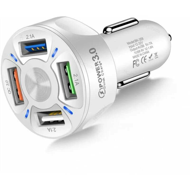 Caratteristiche: Adattatore per caricabatteria da auto 4 in 1, uscita 7A/35W, ricarica rapida, alto tasso di conversione della ricarica, comodo e veloce. Realizzato in 'materiale ignifugo di prima qualità, è sicuro e affidabile, resistente alle cadute e ha una lunga durata. 4 interfacce USB con una forte compatibilità per caricare telefoni, tablet, laptop, ecc. registratori di guida e altri dispositivi USB. Design ad anello a 3 punti integrato, anche se guidi su strade di montagna irregolari, non ci saranno interruzioni di corrente. Sovracorrente, surriscaldamento e cortocircuito integrati e altre funzioni di protezione per garantire un'uscita di corrente stabile. Con il display a LED, quando il dispositivo è in carica, il dispositivo avrà un display luminoso per una migliore ricerca. Piccolo e comodo, plug e gioca, è adatto per la maggior parte delle auto, camion, furgoni, SUV, campeggio -auto, ecc. 12-32V sul mercato. Caratteristiche: Colore: nero/bianco (opzionale) Materiale: PC