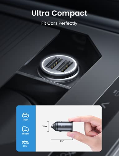 Caricabatteria auto USB, 4.8A/24W [Tutto metallo] Caricatore adattatore universale 2 Porte [Indicatore stato tensione vettura display] Caricabatterie da auto per Phone, Samsung e altro ancora(Nero)