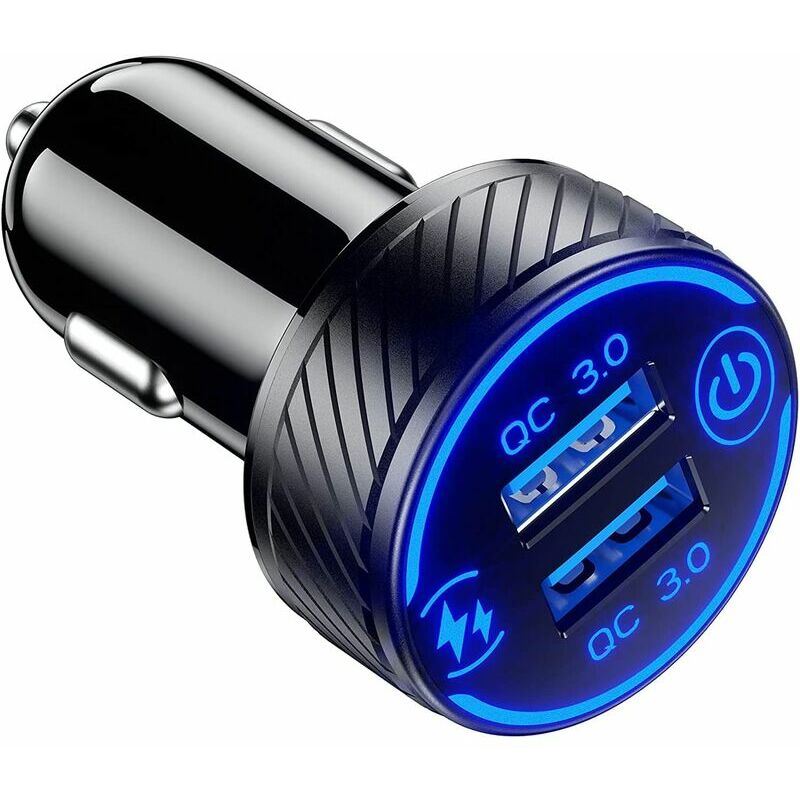 Il caricabatterie per auto è realizzato con materiali resistenti alle alte e basse temperature, che possono essere utilizzati in un ambiente di lavoro di -20 60 C. Il chip intelligente integrato e ha superato una serie di certificazioni di sicurezza, supporta la sicurezza del carico. . Con due porte USB QC3.0, il caricabatteria per auto carica rapidamente due dispositivi compatibili contemporaneamente alla velocità QC3.0, fino a 4 volte più veloce rispetto alla ricarica convenzionale. Doppia uscita totale da 36 W, ciascuna uscita da 18 W/3 A. Questo caricatore per auto USB retrocompatibile con QC 2.0 e 1.0. . Questo caricabatteria per auto è dotato di un LED blu che può aiutarti a trovare facilmente la porta di ricarica USB del caricabatteria per auto in un ambiente buio. Dispone di un interruttore tattile che controlla l'alimentazione del LED blu. L'interruttore non controlla l'alimentazione alle due porte di ricarica USB. . Caricatore da auto universale dual USB compatibile con