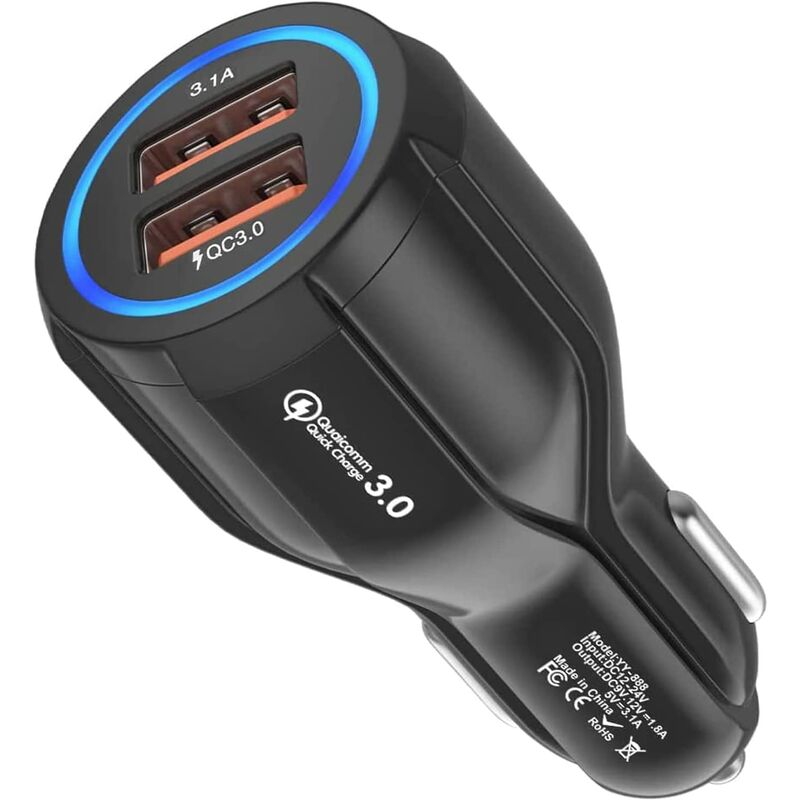 Caricabatteria per auto a doppia porta: quando sono collegati 2 dispositivi, il caricabatteria per auto a doppia porta USB li ricaricherà contemporaneamente e la porta QC3.0 caricherà i telefoni che supportano la ricarica rapida. < p>Design intelligente: integrato in luce LDE lo rende facile da usare in condizioni di scarsa illuminazione. Il design compatto si adatta perfettamente all'accendisigari, risparmiando spazio e fornendo un grande appeal estetico. Protezione multipla: protezione da sovracorrente, sovraccarico, surriscaldamento e temperatura elevata per la massima sicurezza e stabilità per caricare i tuoi dispositivi. Ampia compatibilità: adatto per caravan, auto, SUV, furgoni, camion, barche, motoslitte, ecc. Può caricare quasi tutti i dispositivi, come smartphone, tablet, fotocamere sportive, lettori MP3, alimentazione mobile, elettronica, ecc. Contenuto: 1 caricabatteria per auto incluso.