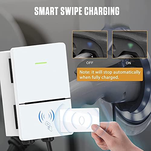 Stazione di ricarica intelligente: è dotata di una scheda magnetica induttiva che sblocca la ricarica strisciandola, rendendola una stazione di ricarica personale (se si desidera sospendere la funzione di strisciamento, contattare il servizio clienti per un tutorial). la stazione di ricarica EV è dotata di un display a LED che consente di osservare facilmente lo stato di ricarica e non danneggia la durata della batteria.