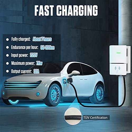 Caricabatteria Auto Elettrica 2 Tipo - Carica Auto Elettrica EV 7KW 32A/16A, IP65 Stazione di Ricarica per Veicoli Elettrici a Parete Impermeabile da 8,5 metri per Tutti i Veicoli Elettrici