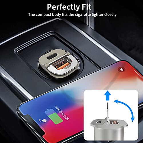 Caricabatteria da auto, mini caricatore per telefono da auto USB 3.0 a 2 porte da 38 W viene fornito con cavo, caricabatteria da auto veloce compatibile con iPhone, Samsung e tablet - argento