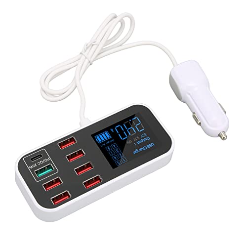 Caricabatteria da Auto USB 40W, Caricabatteria da Auto a 8 Porte QC 3.0 USB C Adattatore per Auto, Stazioni di Ricarica USB con Display Digitale LCD, Compatibile con iOS, per Tablet iOS, per Telefoni