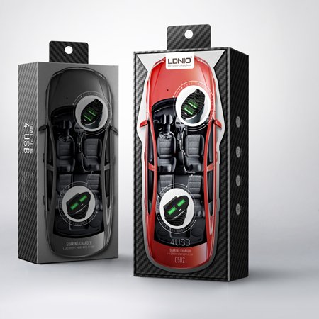 Caricabatteria da auto USB a 4 porte LDNIO C502 5.1A con cavo di prolunga per iPhone X 8 Plus S8 OnePlus 5 Xiaomi6