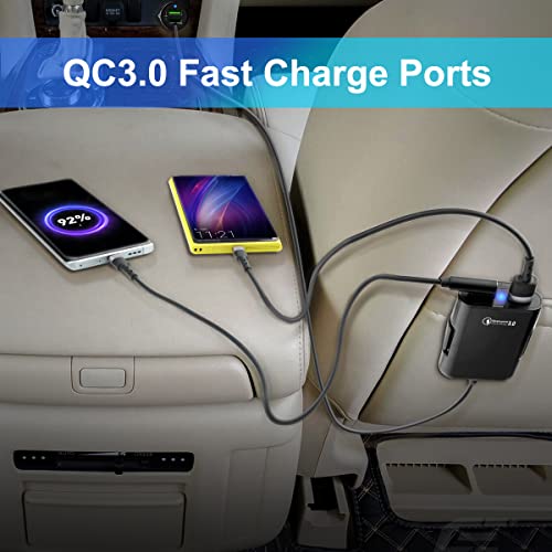 Caricabatteria da auto a 4 porte multiplo, adattatore per caricabatteria da auto QC 3.0 Caricabatteria da auto USB per smartphone con cavo da 5 piedi per la ricarica del sedile anteriore e posteriore
