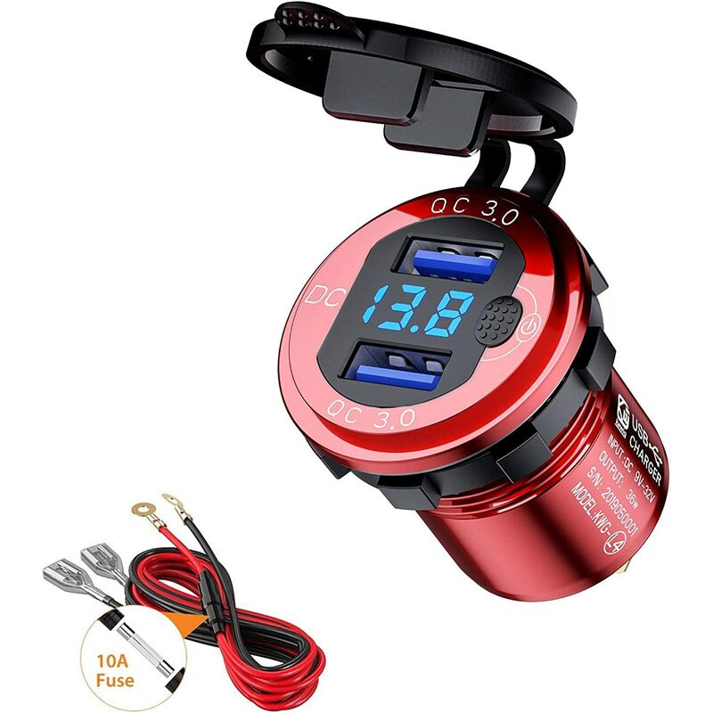 Porta caricatore doppia USB QC3.0 - Il caricabatterie per auto USB di livello ha due porte di ricarica QC3.0 da 36 W, la porta offre l'efficienza di ricarica più veloce fino all'80% in 35 minuti, 4 volte più veloce di un normale caricabatterie. < p>【design dell'interruttore】Risparmia energia e proteggi le apparecchiature, prolungando così la vita utile delle apparecchiature. Protezione con fusibile da 10 A, protegge la tua attrezzatura da sovracorrente. Il fusibile integrato può prevenire il sovraccarico, il surriscaldamento, la sovratensione, la sottotensione e il cortocircuito. 【Indicatore di tensione digitale a LED】Monitora l'impianto elettrico del veicolo, così puoi sempre conoscere lo stato di salute dell'auto. L'indicatore LED lampeggiante ti aiuterà a trovare facilmente la porta di ricarica e non ti distrarrà durante la guida. 【facile da installare】l'apertura è di 3 cm. È adatto per il cruscotto e gli interruttori a bilanciere della maggior parte dei veicoli. + significa