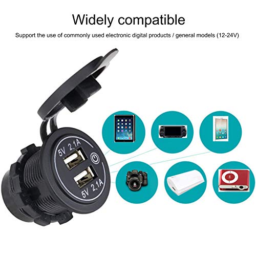 Materiali di alta qualità: facile da installare, resistente, pratico, impermeabile, non sbiadisce, realizzato in materiale PC di alta qualità, questo caricabatterie per auto è durevole.