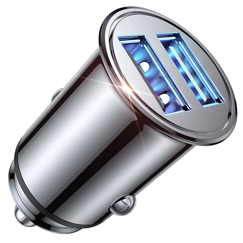 RICARICA EFFICIENTE: l'adattatore di alimentazione per auto USB doppio carica due dispositivi contemporaneamente alla massima velocità con 2,4 A in ciascuna porta USB. Con un'uscita totale di 4,8 A, funziona con tutti i dispositivi alimentati tramite USB. Nota: non supporta Qualcomm Quick Charge, la pagina di ricarica NON mostrerà la ricarica rapida durante la ricarica. FORMATO COMPATTO: Con un corpo piccolo come un pollice, si abbina perfettamente alla maggior parte degli accendisigari per auto e si adatta comodamente con il bordo della presa. Il nostro caricabatterie per auto più piccolo di sempre;