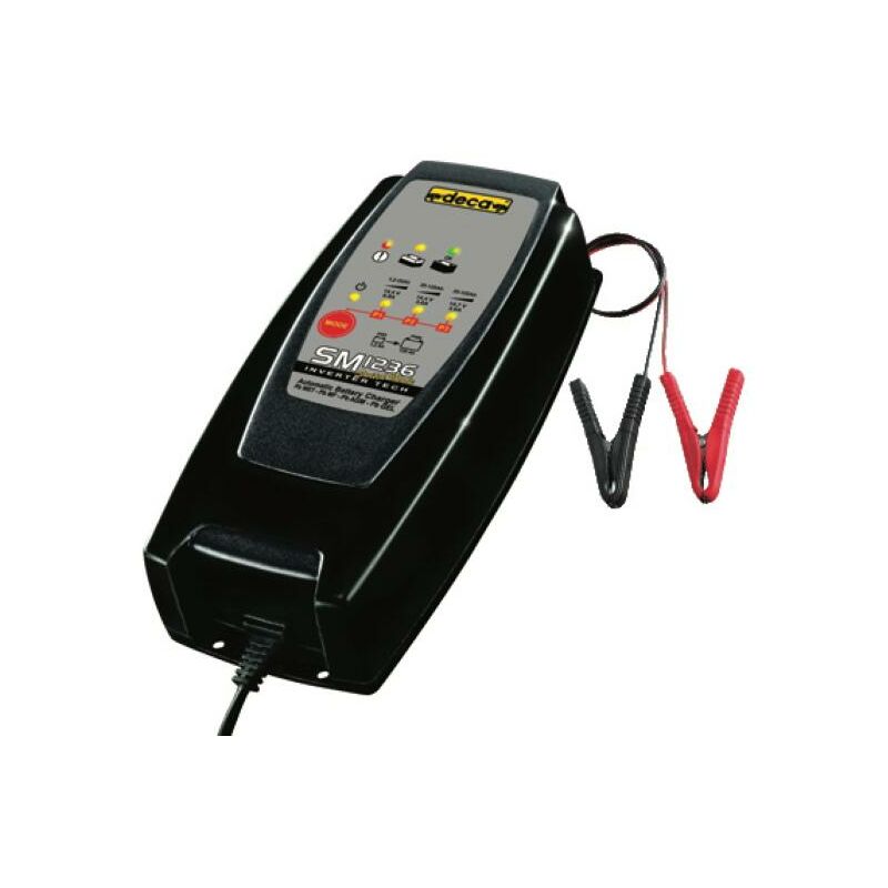 Carica batterie automatico con programma per la carica di mantenimento (carica ad impulsi). Alimentazione 0,8-3,6 Amp - 12 Volt - 50/60Hz, potenza 60 Watt, capacita' batteria (Ah min/max) 1,2/75. Dimensioni 20x9x4,5 cm. Avviamento ed alternatore. Programma di ricarica in 8 fasi, 4 modalita' di funzionamento. Adatti alla ricarica di batterie al Piombo: WET con e senza manutenzione, AGM, GEL, Ca/Ca