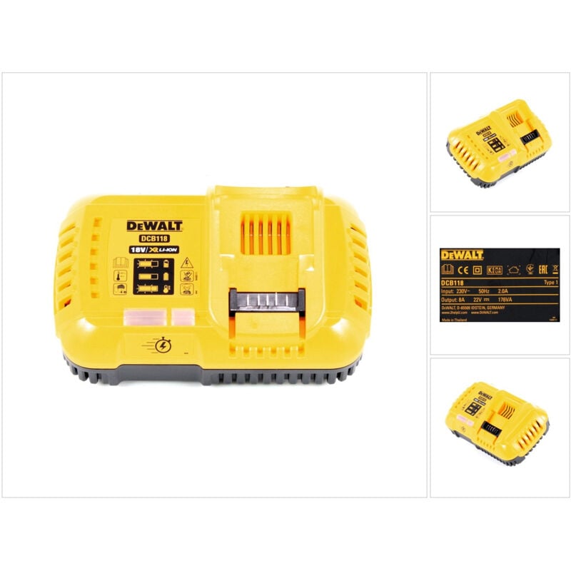 Contenuto della confezione: - 1x Caricabatteria DeWalt DCB118 54V / 18V XR FlexVolt Descrizione del prodotto: Il caricabatterie DCB118 di DeWalt è stato progettato appositamente per tutte le batterie DEWALT XR 18V slide-in fino a 8A e per le batterie DeWalt FLEXVOLT (54 o 18V per una capacità massima di 6,0Ah). Il processo di carica a due fasi e il sistema di raffreddamento brevettato con ventola assicurano una lunga durata della batteria e la massima capacità di stoccaggio grazie a una carica delicata. Il DCB118 è inoltre dotato di un display a LED integrato per monitorare i livelli di carica della batteria e garantire il massimo comfort di lavoro. Grazie alle sue dimensioni compatte, è adatto anche al montaggio a parete, offrendo un'installazione ottimale. Specifiche tecniche: - Corrente di carica: 4 o 8A - Tecnologia della batteria: ioni di litio - Compatibilità: batterie 18V, 54V o 18V FLEXVOLT XR a scorrimento - Tempo di ricarica con 4A: circa 20min (batterie da 1,3Ah), circa