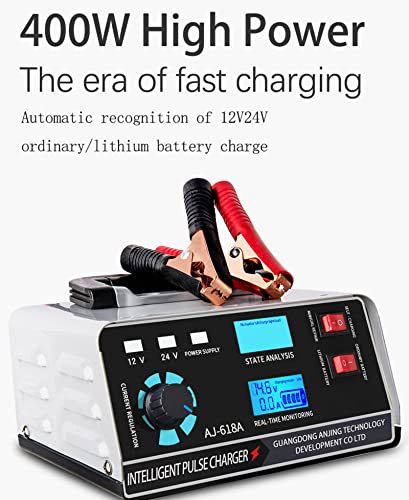 Caricabatteria intelligente Caricabatteria per autoveicoli 12V / 24V Caricabatterie intelligente completamente automatico da 400 W, mantenitore batteria per auto per auto