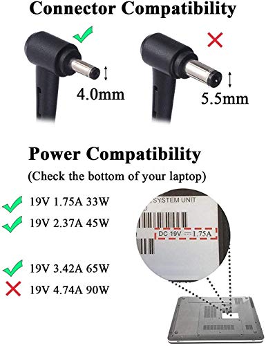 Uscita: 19V 3.42a Compatibilità CON 19V 2.37Aa -Si prega di ispezionare e scoprire le impostazioni specifiche su cui il dispositivo deve lavorare, quindi cercare etichette o simboli che indicano Voltaggio e Ampere
