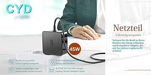 CYD 45W Caricabatteria Notebook Adattatore Portatile Alimentatore per Hp-Spectre 360 x2 13 13t 15 13-4001dx 13-4005dx Folio 1040 G1 G1Q52UT G4U67UT 15-n210us 15-n210dx 15-n211dx Envy x360 x2 13 15 M6