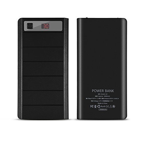 Caricabatteria portatile 20000mAh 2USB Power Bank, 8 x 18650 batterie Power Bank Kit Custodia Shell Dual USB + Type-C + Micro USB Port(Nero)