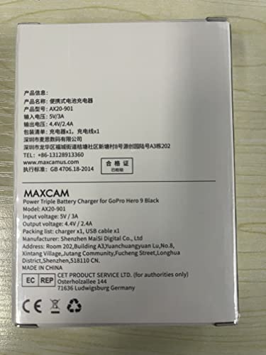 Caricabatteria triplo MAXCAM Power per GoPro HERO 11/HERO 10/HERO 9 Enduro Black