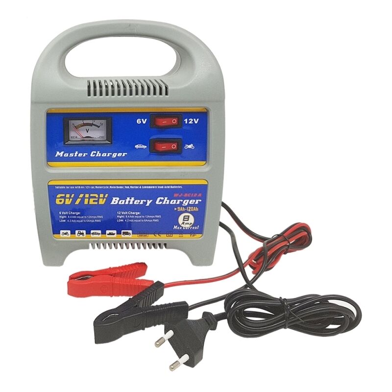Pratico caricabatterie da 6/12 V in un robusto alloggiamento in plastica. Per il monitoraggio del processo di ricarica il dispositivo - dotato di un amperometro, sul quale - possibile visualizzare lo stato di carica attuale della batteria. Le potenti pinz