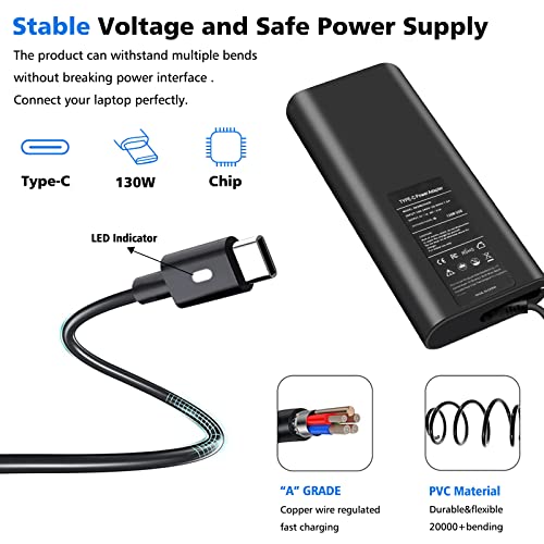 Caricabatterie adattatore USB C tipo C da 130 W per Dell Precision 5530 2in1, Dell XPS 15 2in1 9575, DA130PM170 HA130PM170 0K00F5 K00F5 0M0H25 M0H25 T4V18 Cavo di alimentazione per laptop