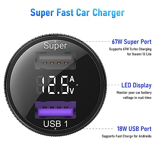 ⚡【Caricabatterie da auto veloce con cavo da USB a USB C 1M】 Il caricabatterie da auto USB per xiaomi è dotato di un cavo USB A a USB C lungo 1M, per caricare rapidamente il telefono Redmi Note 12 fino al 100% in circa 45 minuti. Il caricabatterie da auto per xiaomi può monitorare il sistema elettrico del veicolo e visualizzare alternativamente la tensione dell'auto sulla luce LED morbida del display. L'indicatore LED morbido lo rende facile da trovare e sicuro da