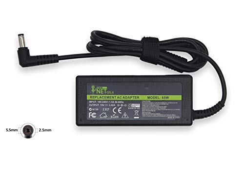 19V 3.42A 65W Caricabatterie Caricatore Alimentatore Pc Notebook compatibile con Asus Toshiba ADP-75SB BB, EXA0703YH, PA150002, PA-1500-02, PA1650, PA-1650, PA165002 [Ext: 5.5 mm - Int: 2.5 mm]
