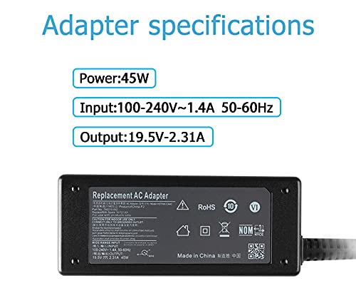 ❁ [Tensione d'ingresso] 100-240 V (uso universale)~50-60 Hz,Uscita: 19,5 V 2,31 A, Potenza di uscita max:45 W, colore: nero, dimensioni di connessione: 4,5 x 3,0 mm.