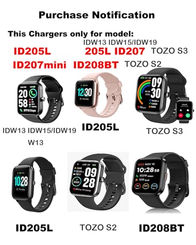 Compatibilità estesa: compatibile con Fitpolo ID205L Gydom IDW13,forTOZO S3,for MILOUZ IDW19,for Fitpolo IDW15,for Tensky for ENOMIR ID208BT,for SKG V7 V7PRO V9 ID207 ID207 mini 208BT ID205L ID205U ID205S ID216 prega di misurare la distanza tra la porta di ricarica magnetica dello smartwatch prima dell'acquisto. (Metodo di misurazione: misurare se la distanza tra il centro di due porte di ricarica magnetiche è 2,8 mm 0,11 pollici)