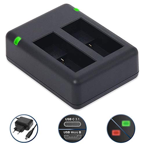 Ricarica sia una batteria che due batterie contemporaneamente. | Alimentatore di rete USB incluso (output: 2,0 Ampere per una velocità di ricarica ottimale) | Ideale per viaggiare: utilizzabile anche con una power bank o adattatore USB per auto (non incluso)