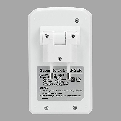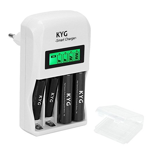 Caricabatterie per Pile Caricatore a Spina EU per Batterie Ricaricabili Universale AA/AAA Ni-Cd Ni-MH Stilo Ministilo 4 Slot Plug Charger Con Display LCD Ignifugo(Batterie non incluse)