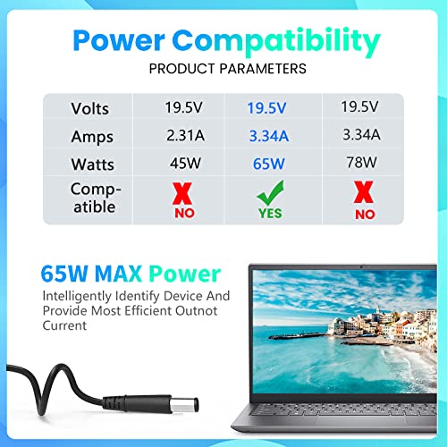 65W Caricabatterie PC Portatile per Dell Latitude E4200 E4310 E5400 E5500 E5470 E6410 E6430 Inspiron 1545 1520 1537 N5050 N5110 7490 5490 5480 Chromebook 11 3180 3189 PA-1650-05D【7,4 X 5,0 mm】