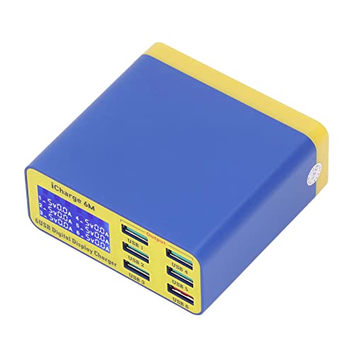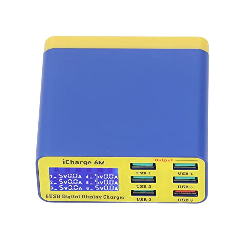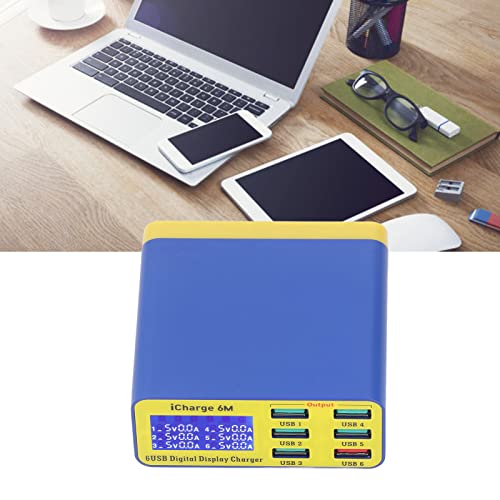 Caricabatterie USB, Caricabatterie a 6 Porte Comodo Display Digitale Leggero 100‑240 V per la Casa (Spina europea 100‑240 V)