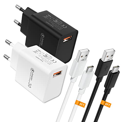 Kit Caricabatterie Rapido(2 x Caricatore USB 18W + 2 x Cavo USB Type-C), Presa Caricatore USB con 3.0A Cavo USB C 180cm per Samsung Galaxy S20/20+/20 ultra/S10/10+/S9/S9+/S8/S8+, A50/A51/A60/A70