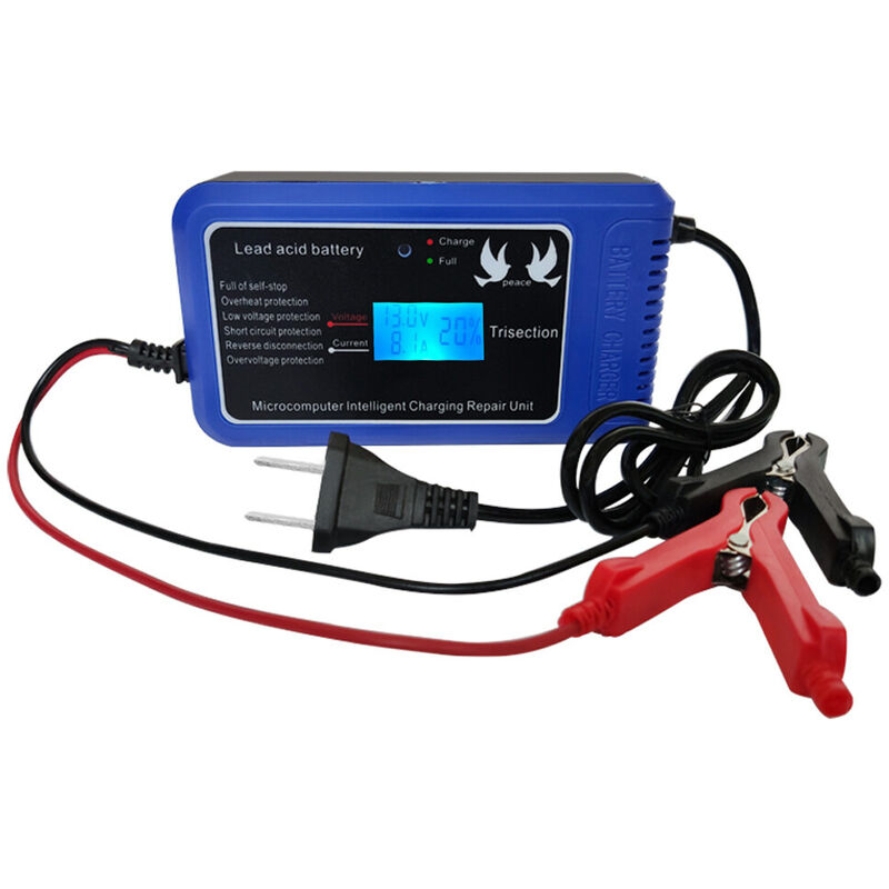 Si tratta di un caricabatteria completamente automatico con 3 stadi di carica. La ricarica automatica protegge la batteria dal sovraccarico. Così puoi lasciare il caricabatteria collegato alla batteria a tempo indeterminato. Caratteristiche: Display LED. Controllo a microprocessore (CPU). Si tratta di un caricabatteria completamente automatico con 3 cariche stadi. Protezione da sovracorrente, protezione da sovratensione, protezione da surriscaldamento, protezione da cortocircuito, disconnessione inversa, con funzione di arresto automatico. Ventola di raffreddamento intelligente, carica ultra-silenziosa. Specifiche: Materiale: plastica Colore: blu intenso Raffreddamento: ventola Tensione di ingresso: 100-230 V AC Uscita: DC14.4V Adatto: per 12V 10AH-100AH Dimensioni articolo: 162 * 90 * 60 mm / 6,4 * 3,5 * 2,4 pollici Peso: 400 g / 0,88 libbre Formato confezione: 200 * 120 * 80 mm / 7,9 * 4,7 * 3,1 pollici />Peso della confezione: 440 g / 0,97 lb Elenco dei pacchetti: 1 * caricabatteria