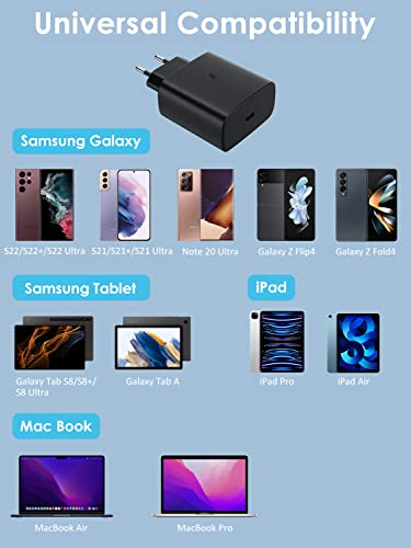 45W Caricabatterie USB C per Samsung S22 Ultra / S22 Plus/Z Flip 4/Z Fold 4/Z Flip 4/Z Fold 4/S21/S20/Note 20/A52/A72/Tab Spina Type C Spina Alimentatore Presa Carica Muro Ricarica Rapido Caricatore