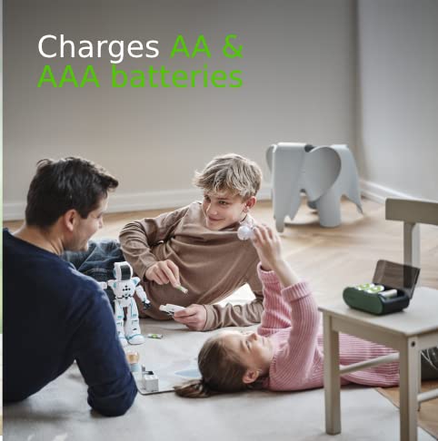 Caricabatterie per Pile Ricaricabili AA e AAA - La confezione include un Caricatore a 2 Slot con Indicatori LED, 2 Batterie Ricaricabili AA e un pratico cavetto micro USB