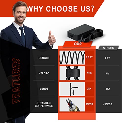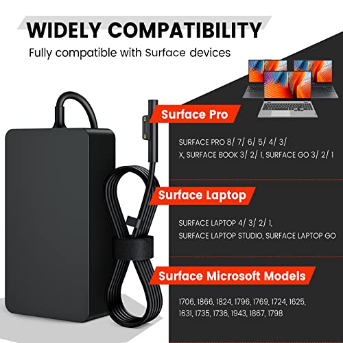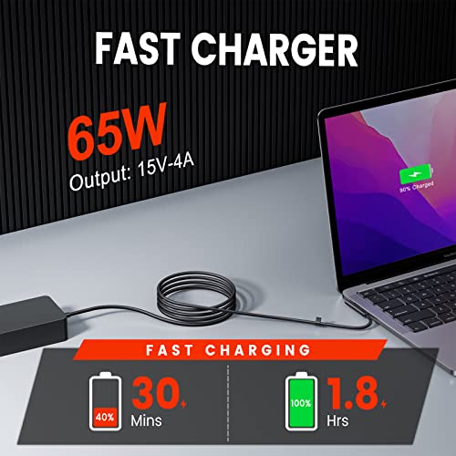 65W Caricabatterie Surface Go Alimentatore Microsoft Surface Pro 8/7/6/5/4/3/X Caricabatterie Laptop 4/3/2/1 Tablet Surface Book 3/2/1 Supporto 1706,1866,1796,1724,1625,1867,1735 Charger 15V 4A