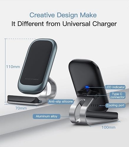 Supporto in metallo: questo caricabatterie wireless su supporto è progettato con un corpo in metallo unico per mantenere il telefono cordless carico verticalmente o orizzontalmente