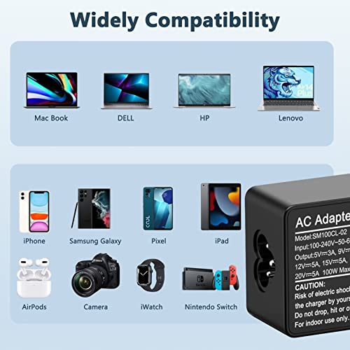 ✅ 【Ampia compatibilità】 -- Appositamente progettato per caricare il tuo dispositivo USB C, caricabatterie USB C da 100 W con cavo USB-C da 2 m (20 V = 5 A), che con chip E-mark, compatibile con MacBook Pro 16, 15, 14, 13 pollici, New MacBook Air 13 pollici, iPad Pro e iPad Air e tutti i dispositivi di ricarica USB-C, laptop e telefoni Android. Può riconoscere automaticamente il tuo dispositivo e fornire la corrente di uscita più veloce ed efficiente.
