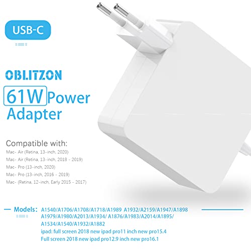 【Alimentatore per una Compatibilità Super Ampia】 L'alimentatore OBLITZON viene utilizzato principalmente per caricare laptop Mac Book con un'interfaccia USB-C. Questo alimentatore è compatibile anche con altri dispositivi abilitati USB-C come i Pad-Pro, HUAWEI, SAMSUNG, ecc. (Se vuoi caricare il tuo i Phone 11/11 Pro / Pro Max / Airpods, ti serve il cavo di ricarica per i Phone 11/11 Pro / Pro Max (non incluso))
