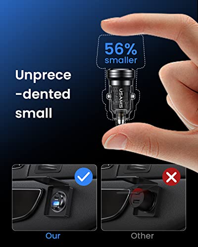 【Dimensione mini e luce LED blu】La dimensione super mini si nasconde perfettamente nell'accendisigari. Non salta fuori durante la guida e non intasa il coperchio dell'accendisigari. La morbida luce LED blu aiuta a trovare rapidamente la presa USB al buio e a collegare il cavo di ricarica alla porta, garantendo una guida sicura.