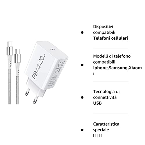 Contenuto Della Confezione: 20W Caricatore USB C (Bianca)+ 2M Cavo USB C a USB C, con garanzia di 12 mesi e servizio clienti 24 ore su 24, 7 giorni su 7, per qualsiasi domanda, risolveremo il problema entro 24 ore.