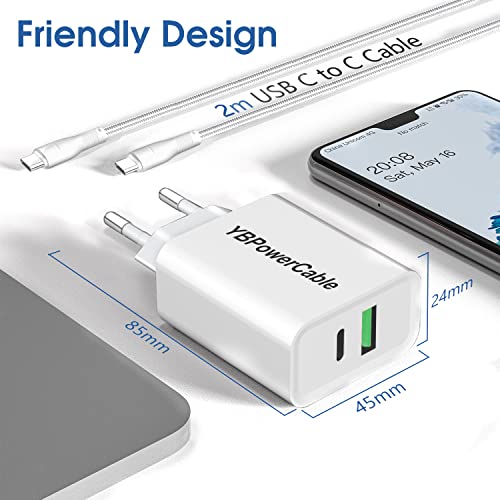 Caricatore USB C PD 25W&18W QC 3.0 con Cavo per Samsung S21 S23 S20 Plus Ultra FE 5G A33 A53 A52S A54 A34 5G,Z Flip 3 4/Z Fold 3,Xiaomi 12 11,2-Port Caricabatterie Rapida per iPhone 12 14 13 Pro Max