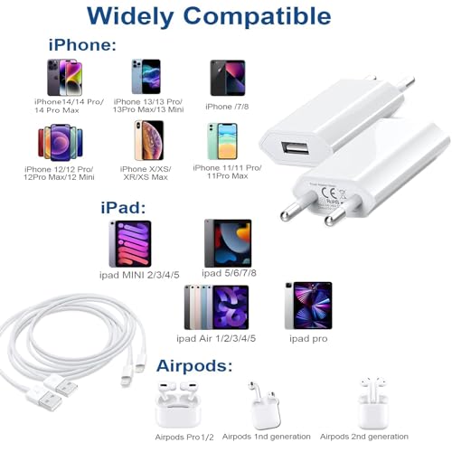 Caricatore iPhone - 5V/1A【Certificato Apple MFi】 Adattatore di Ricarica USB da 5W e Cavo di Ricarica USB a Lightning da 1M(2 Pack), Compatibile con iPhone 14/14 Pro/14 PRO Max/13/12~6 5/iPad/Airpods
