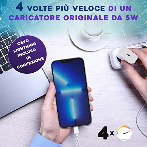 Caricatore per iPhone 20W Rapido USB C [Certificato MFi] - Alimentatore Caricabatterie per iPhone 14 13 12 11 Pro Max Mini XS XR X 8 SE - Caricatore per Apple + Cavo Ricarica Type C/Lightning PHONIX
