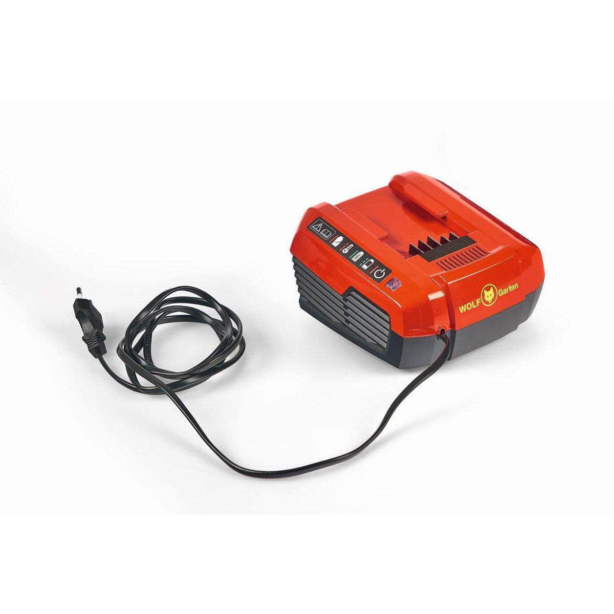 Caricabatterie rapido Wolf-Garten Lycos 40/430 QC 40V. Può essere utilizzato per tutte le batterie nel sistema 40V. 4.3A La corrente di carica garantisce una ricarica rapida. Ventola di raffreddamento.